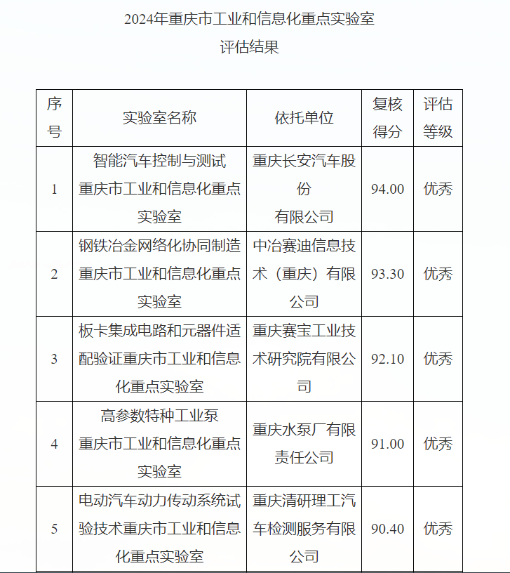 近日,重慶市經濟和信息化委員會公布了2024年度重慶市工業和信息化重點實驗室評估結果,重泵公司“高參數特種工業泵實驗室重慶市工業和信息化重點實驗室”以被評為“優秀”,在全市35個工業和信息化重點實驗室中排名第四。