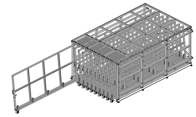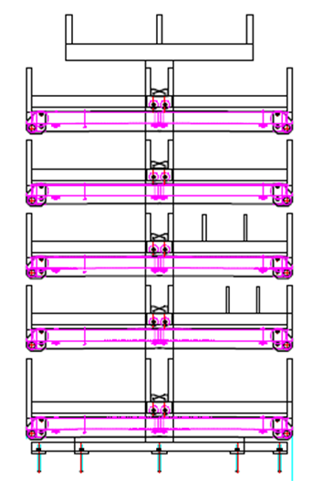 4、層數:豎直并排10層,每層間隔200mm,底部采用滾輪結構,方便出料,不卡阻;