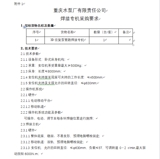 3D往復(fù)泵管路焊接專機 招標(biāo)公告